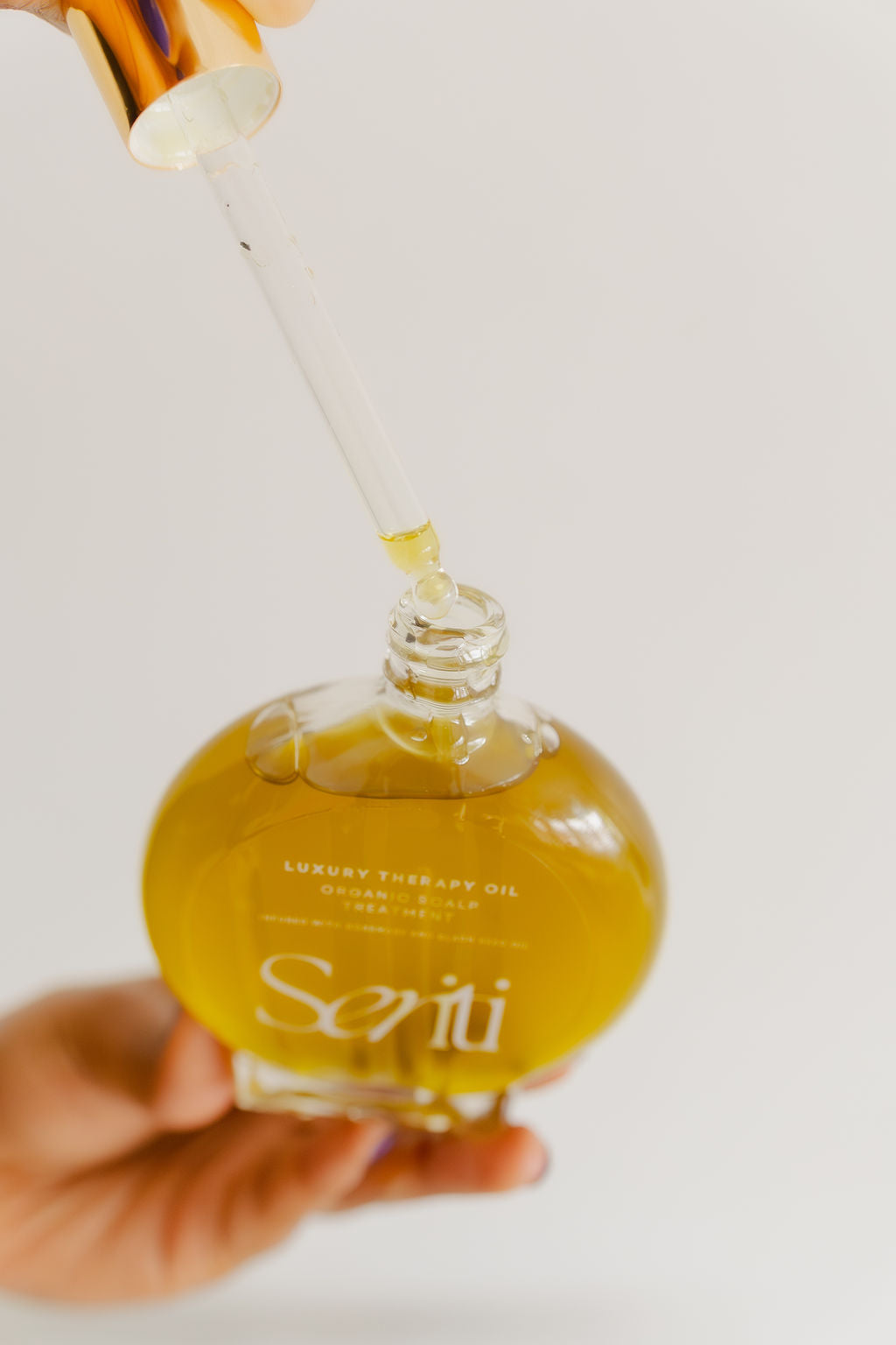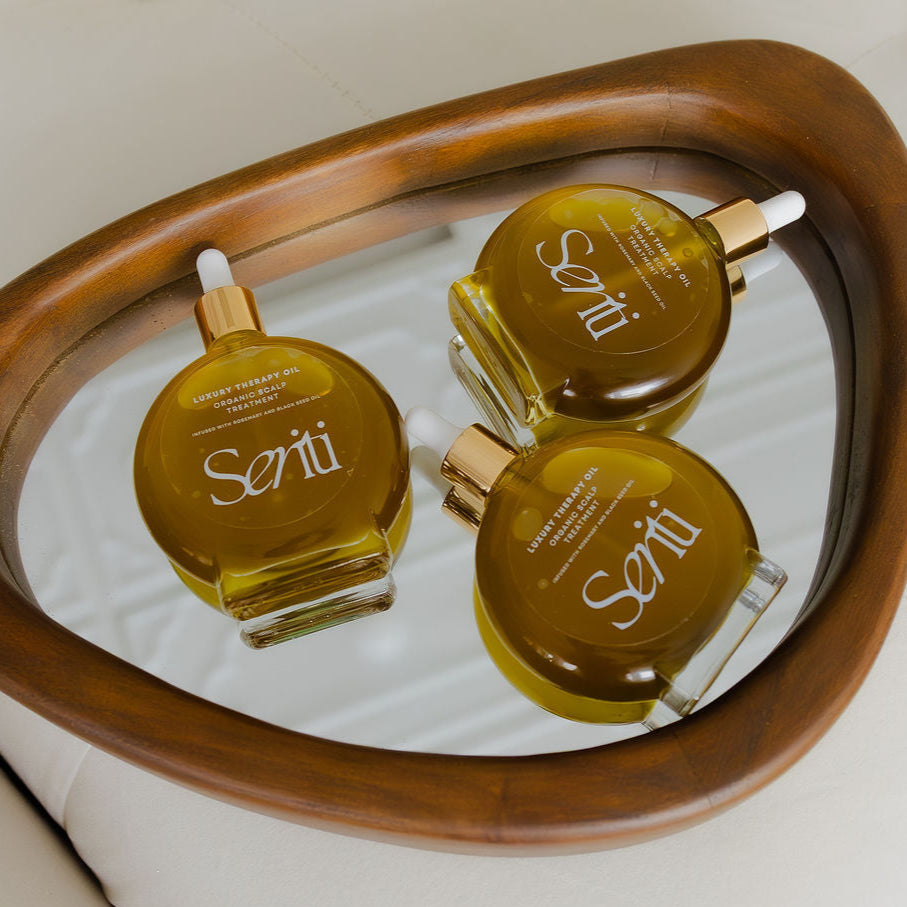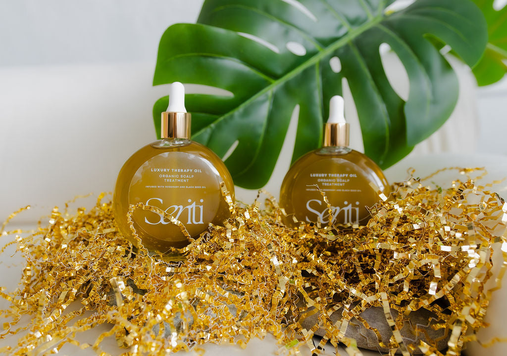Seriti Luxury Oil Therapy is more than a hair care product—it’s a silky infusion of nature’s finest, created to restore, elevate, and empower. Imagine each drop as a love letter to your scalp, crafted with clove, rosemary, stinging nettle, fenugreek, and black seed oil—ingredients known for their ability to awaken your roots, relieve dryness, and encourage fuller, stronger, more radiant hair.